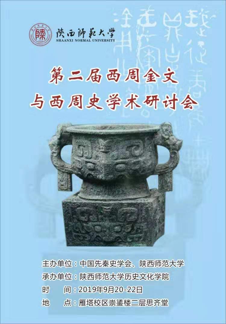 为进一步加强学习交流,促进西周金文与西周史的发展,由中国先秦史学会、beat365手机版官网主办,beat365手机版官网历史文化学院承办的“第二届西周金文与西周史学术研讨会”,定于2019年9月20-22日在beat365手机版官网雁塔校区崇鋈楼二层思齐堂举行。会议热忱欢迎全国专家、学者和同学莅临、指导、交流与学习。