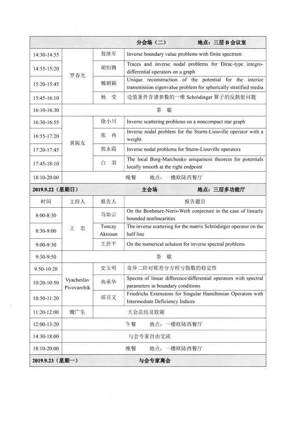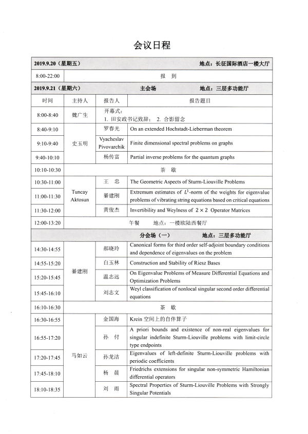 第九届谱理论、微分方程及其应用国际学术研讨会