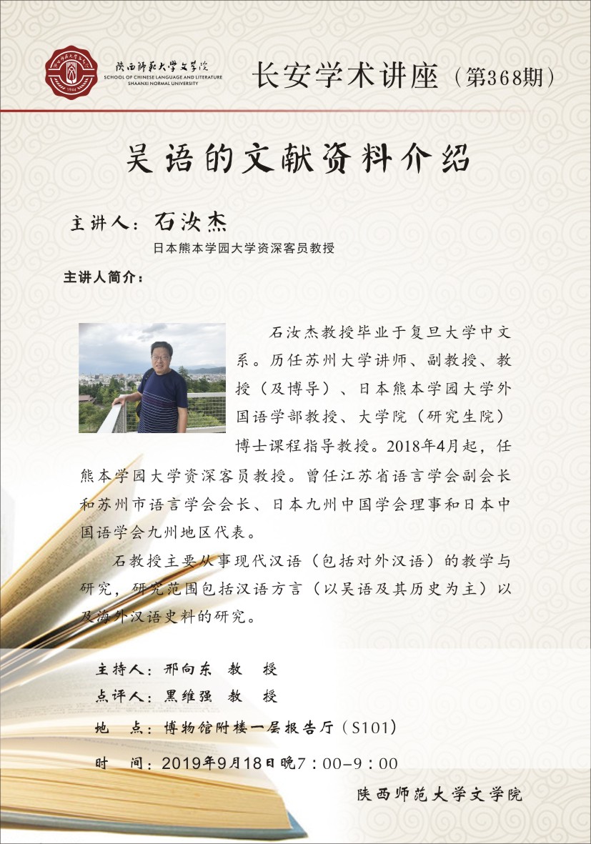 长安学术讲座(第368期):吴语的文献资料介绍