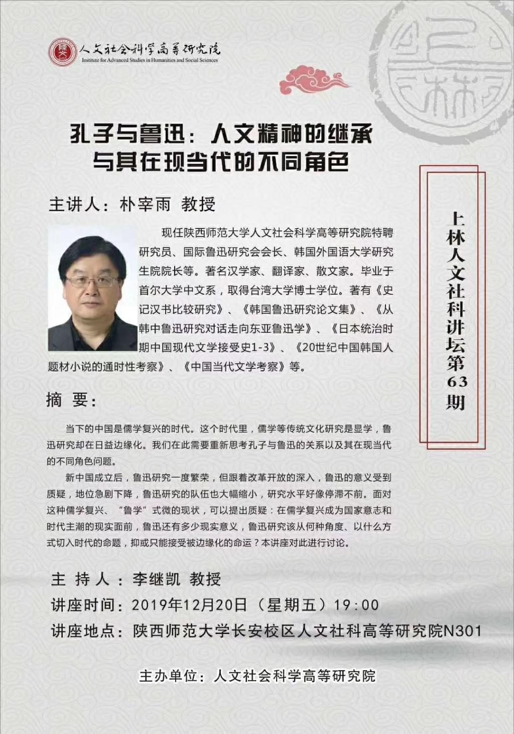 上林人文社科讲坛第63讲:孔子与鲁迅:人文精神的继承与其在现当代的不同角色
