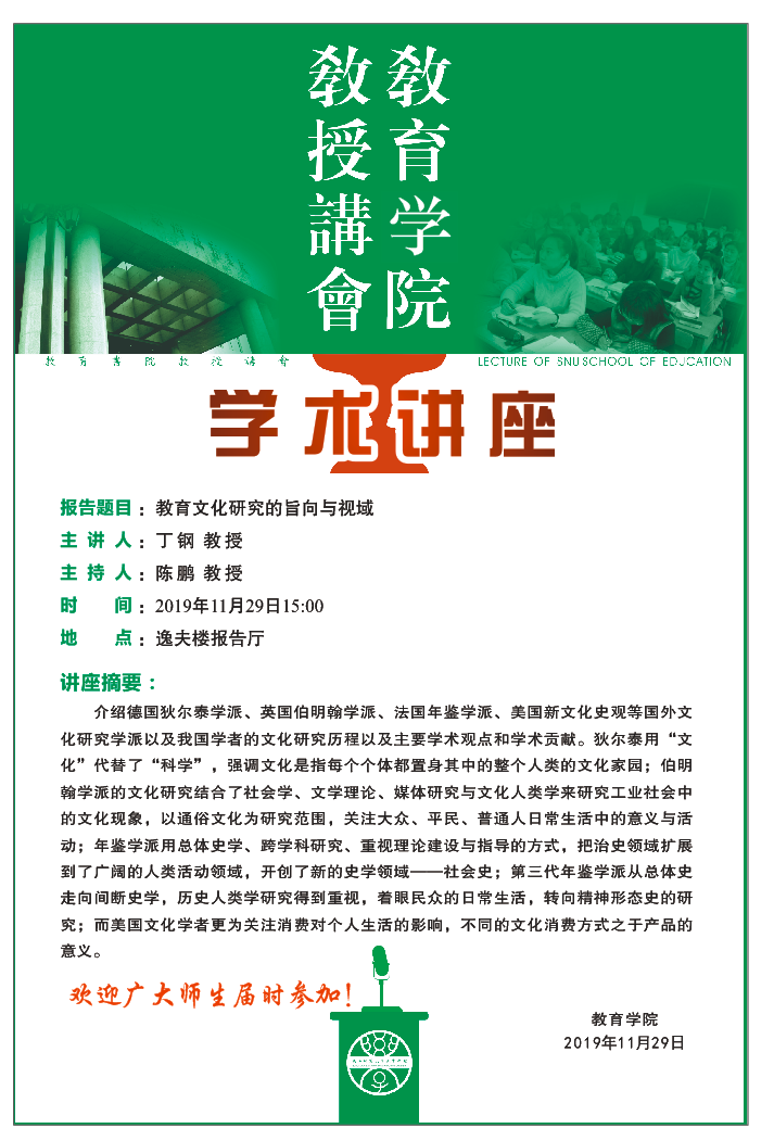 教育学院教授讲会:教育文化研究的旨向与视域