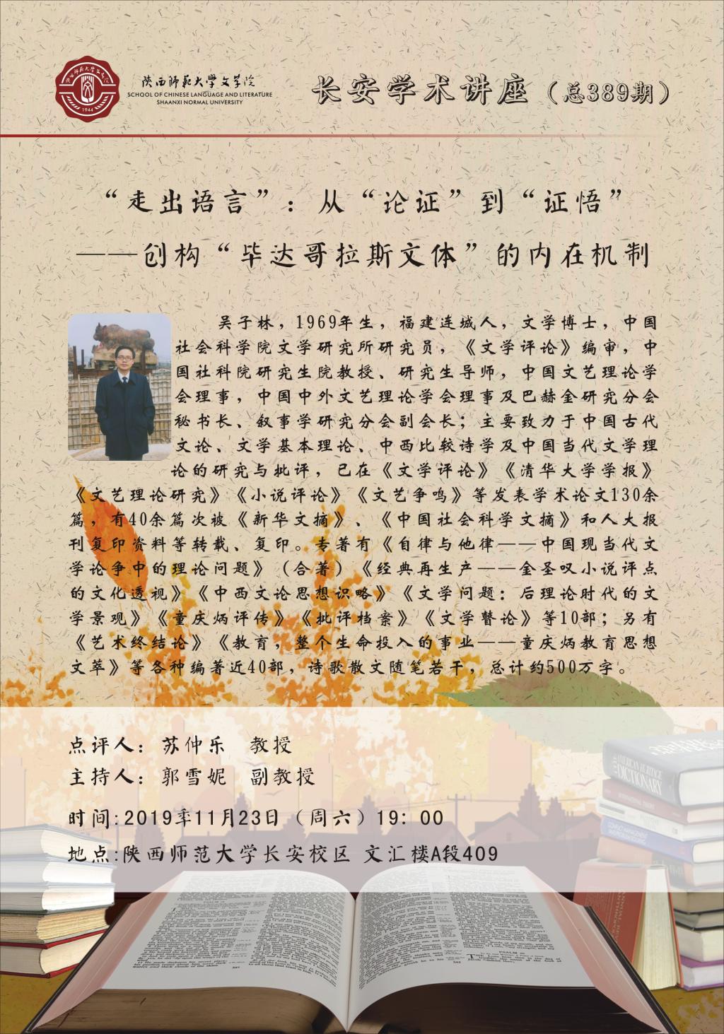 长安学术讲座第389期:“走出语言”:从“论证”到“证悟”——创构“毕达哥拉斯文体”的内在机制
