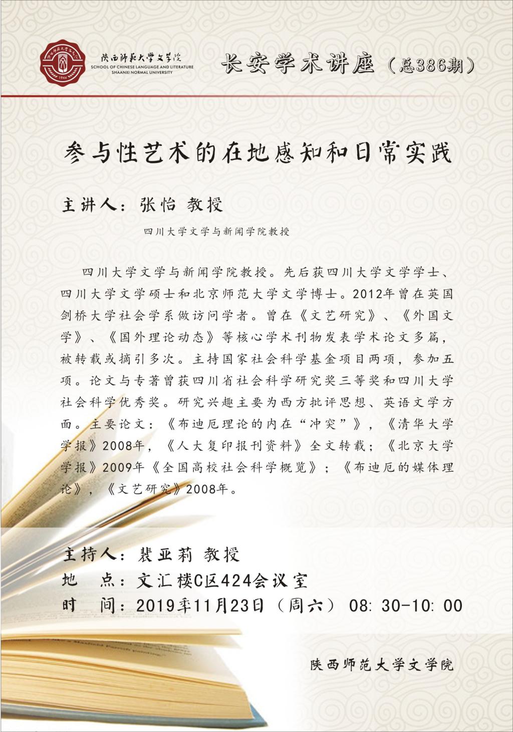 长安学术讲座第386期:参与性艺术的在地感知和日常实践