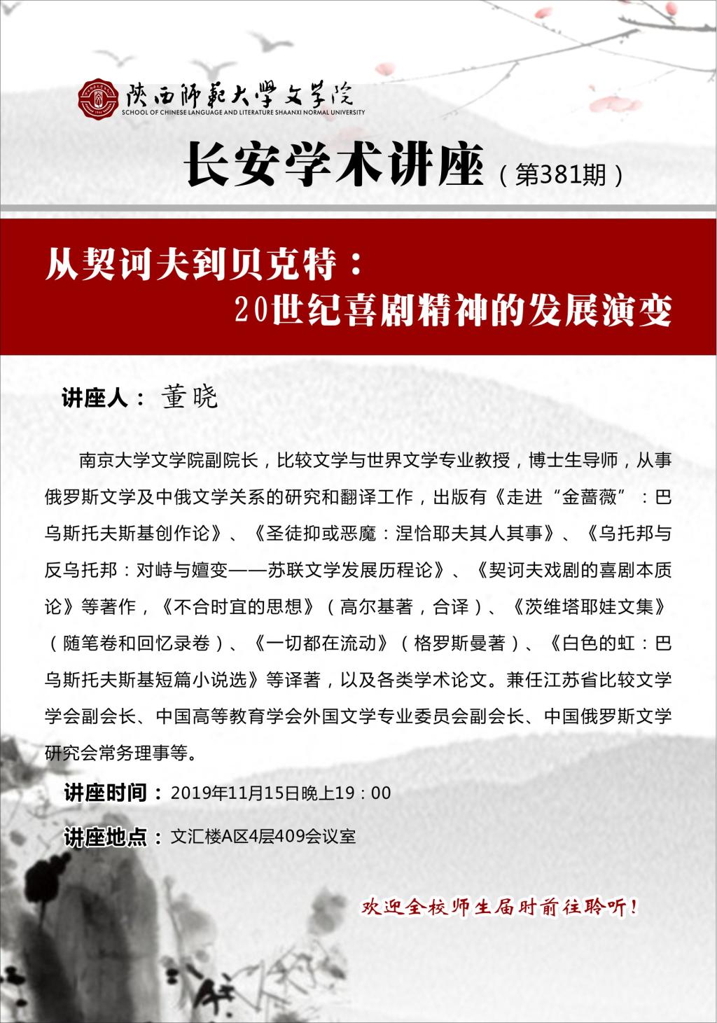 长安学术讲座(总381期):从契诃夫到贝克特:20世纪喜剧精神的发展演变