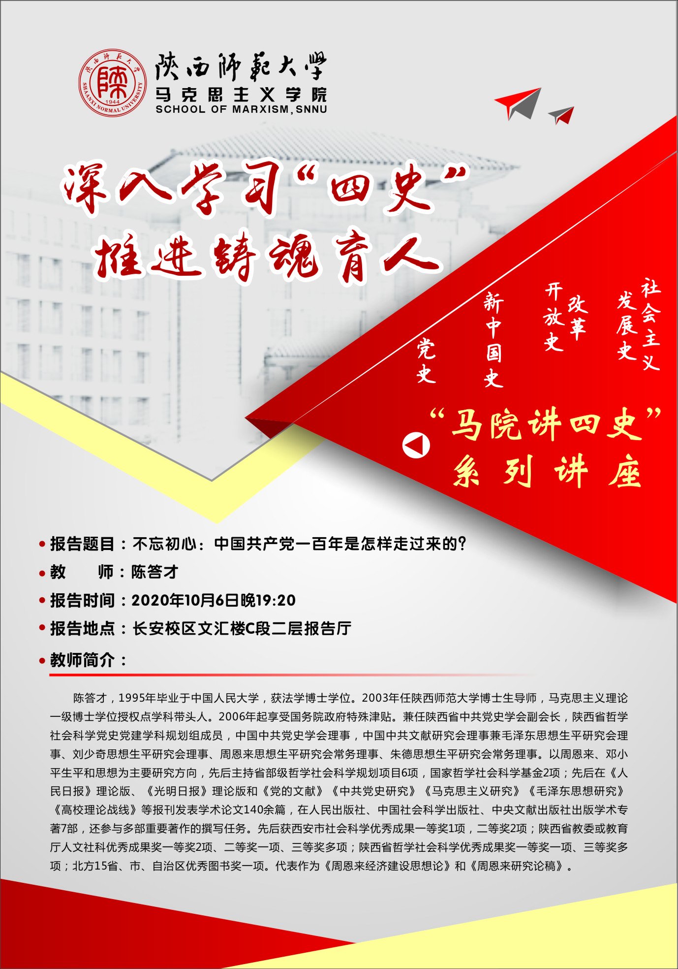 “马院讲四史”系列讲座(二):不忘初心:中国共产党一百年是怎样走过来的?