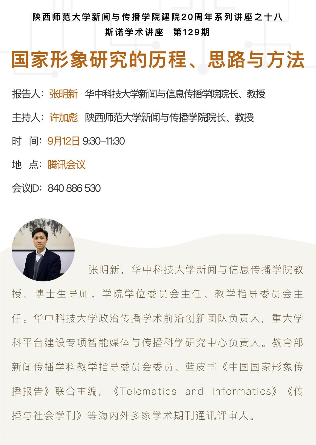 新闻与传播学院“斯诺学术论坛”第129期:国家形象研究的历程、思路与方法
