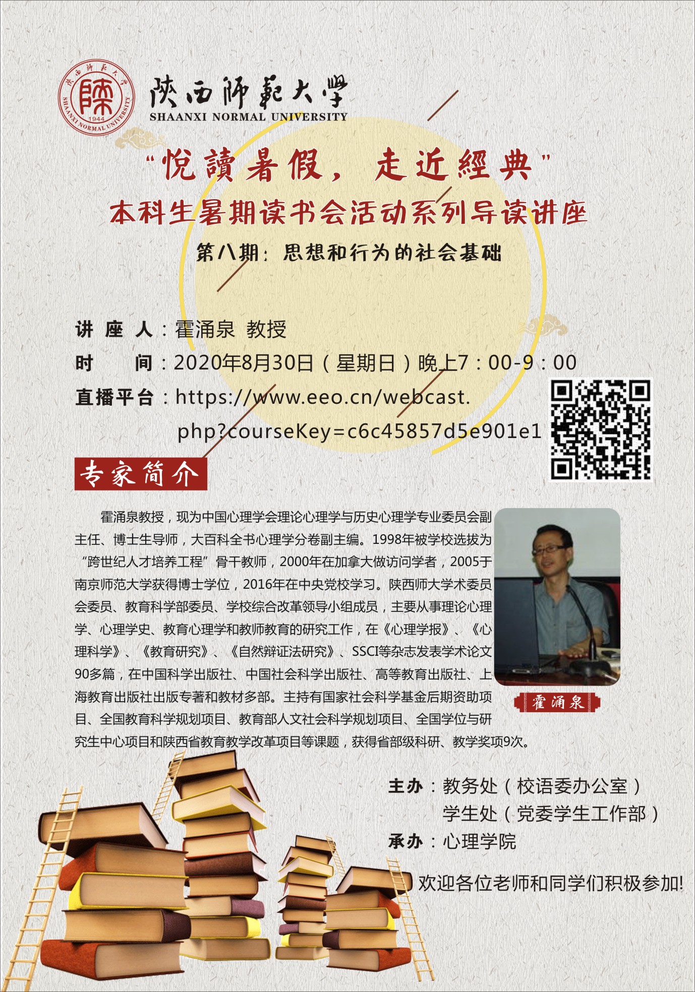“悦读暑假,走近经典”本科生暑期读书会活动系列导读讲座(八):思想和行为的社会基础