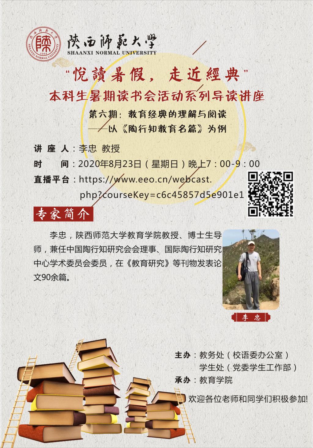 “悦读暑假,走近经典”本科生暑期读书会活动系列导读讲座(六):教育经典的理解与阅读——以《陶行知教育名篇》为例
