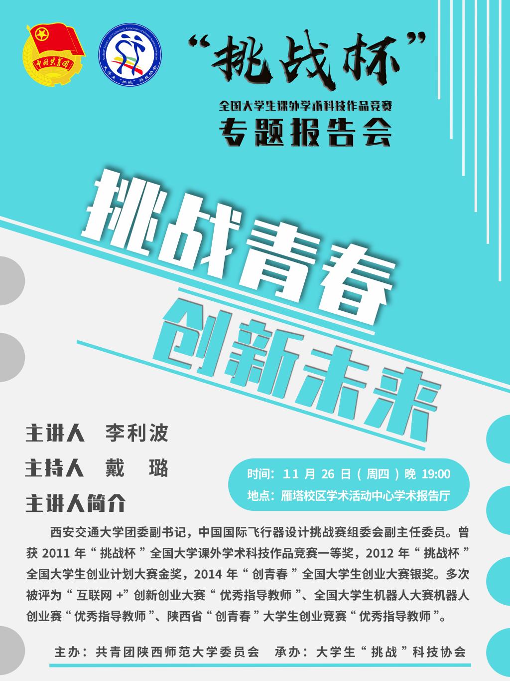 “挑战杯”专题报告会(二):挑战青春 创新未来