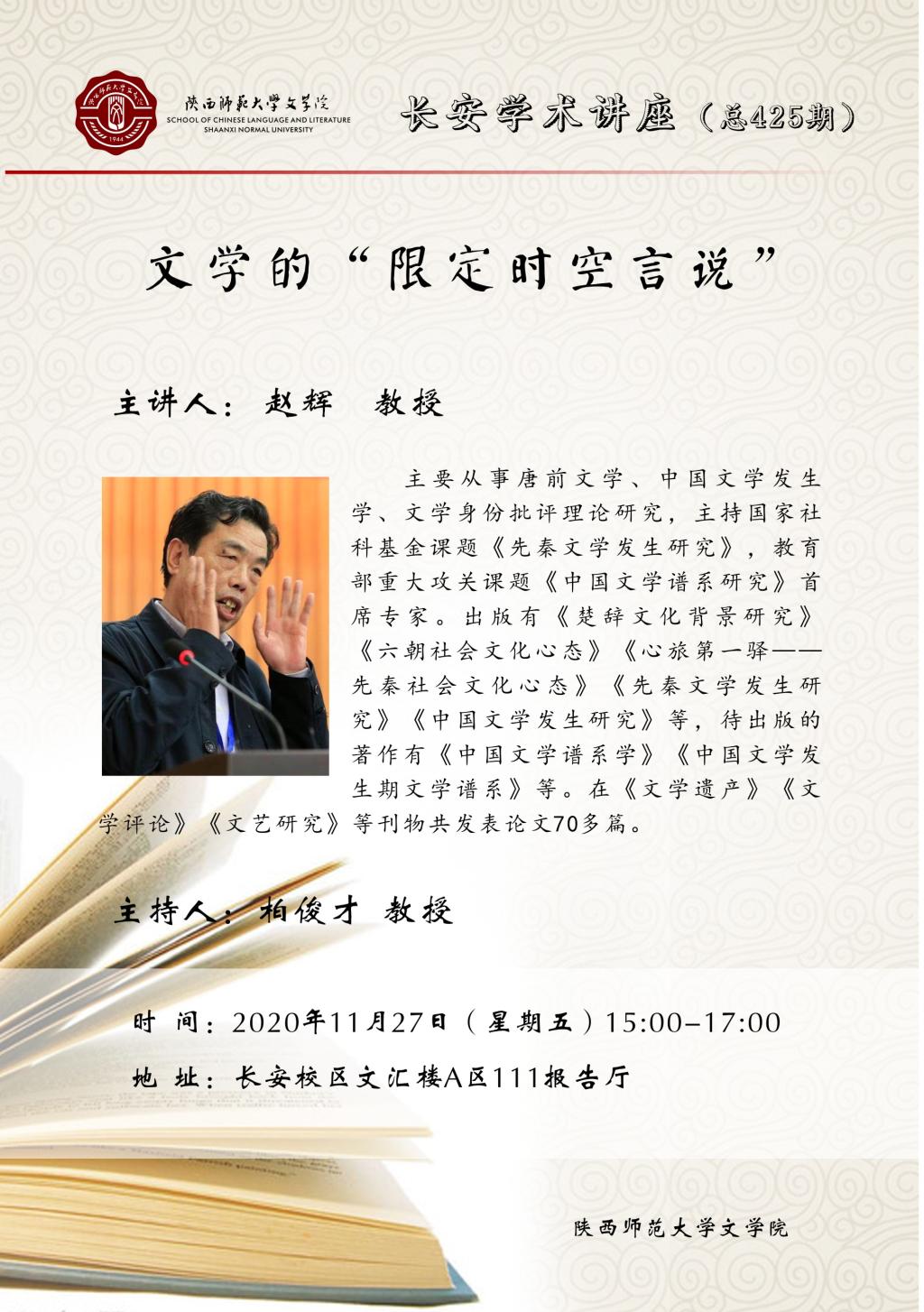 长安学术讲座(总425期):文学的“限定时空言说”