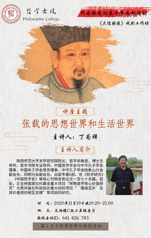 丁为祥,beat365手机版官网关学研究院院长,哲学系教授,博士生导师。中国哲学学会与中华孔子学会理事,中国朱子学会常务理事,中华孔子学会陆象山分会副会长、王阳明分会副会长。出版专著6部,发表论文一百七十多篇。目前,正主持国家社科基金重大项目“宋明道学核心价值研究”与贵州省社科规划办重大招标项目“‘儒道互补’及其价值观的相互支撑”等项目的研究。