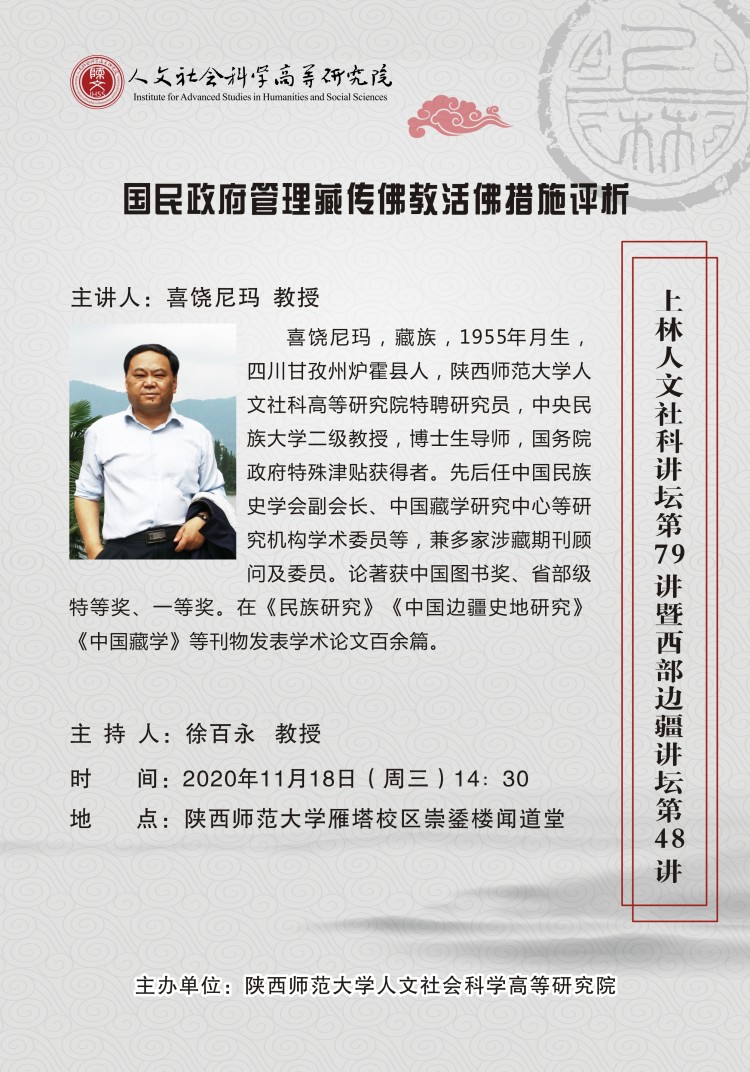 上林人文社科讲坛第79讲:国民政府管理藏传佛教活佛措施评析