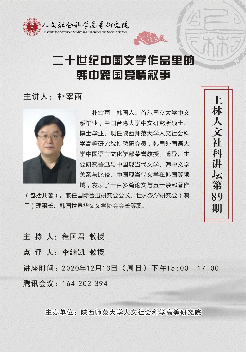 上林人文社科讲坛第89讲:二十世纪中国文学作品里的韩中跨国爱情叙事