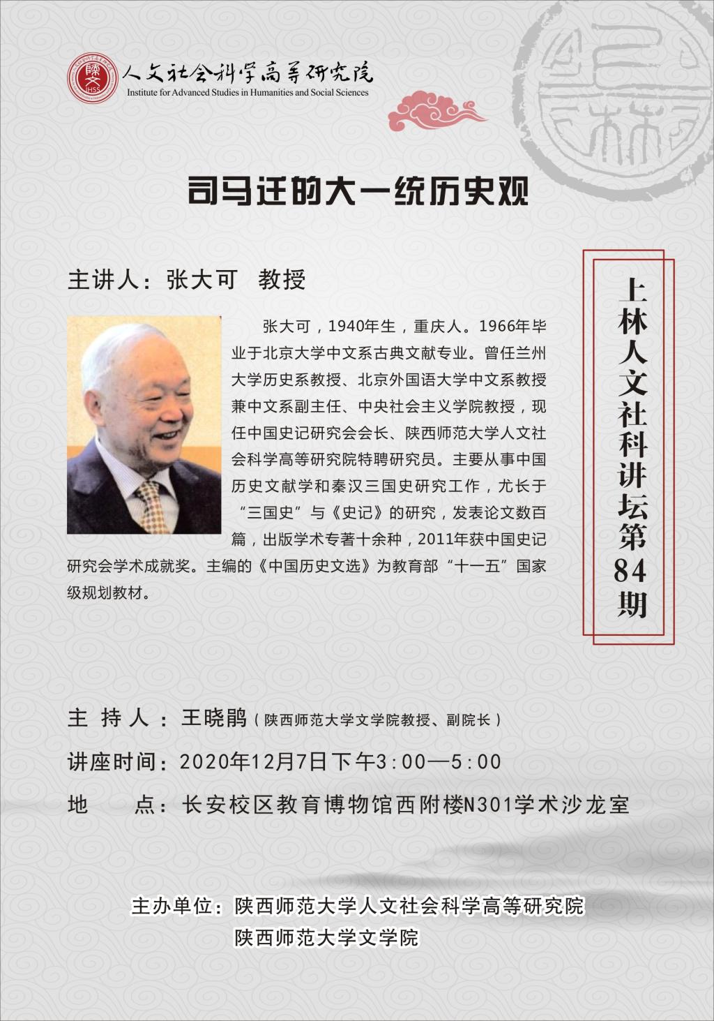 上林人文社科讲坛第84讲:司马迁的大一统历史观