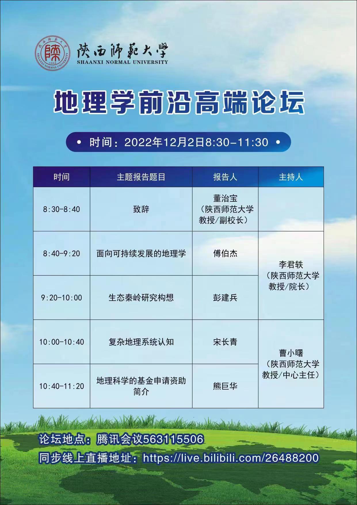 【学术活动月系列二十六】地理学前沿高端论坛