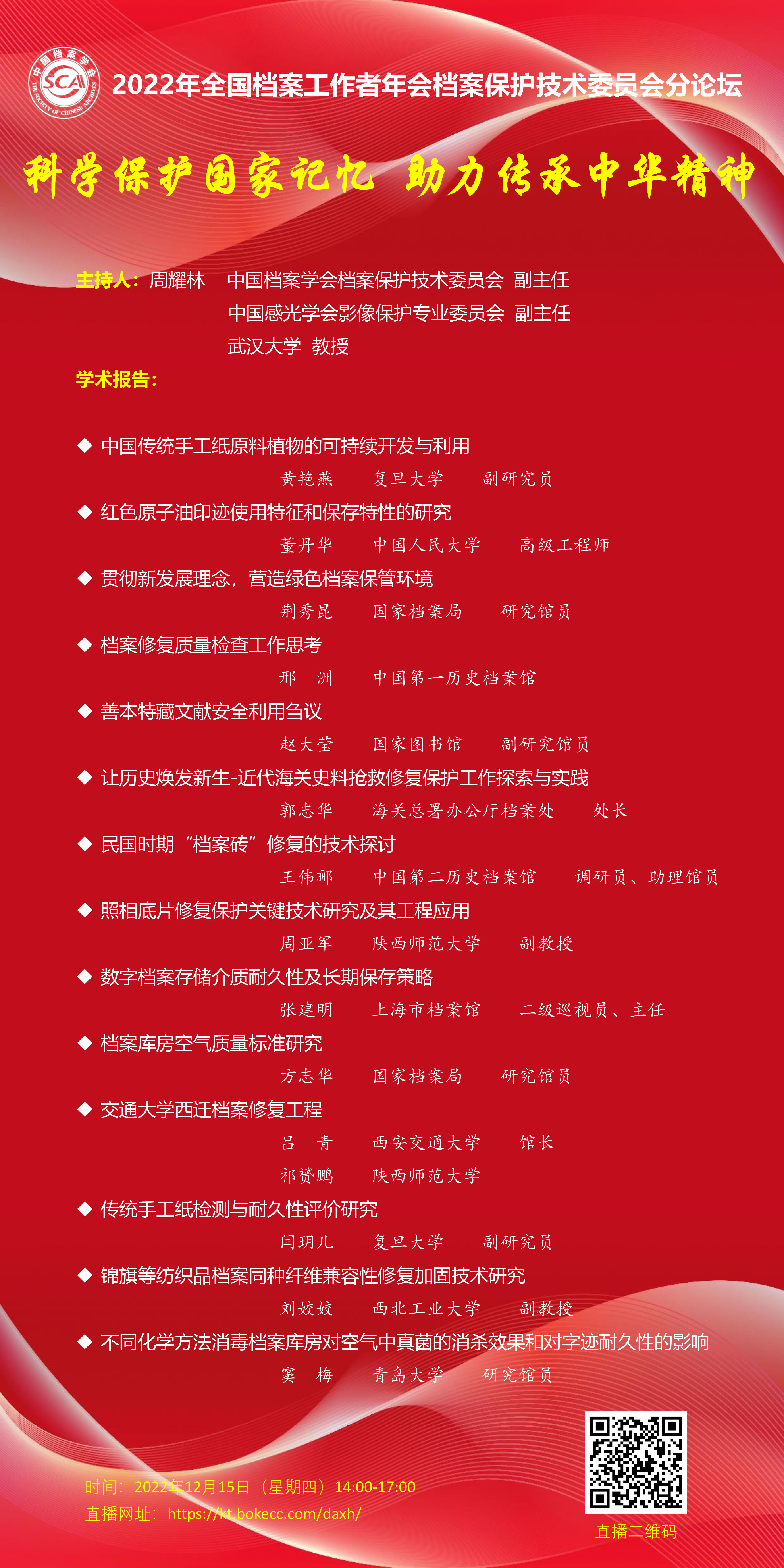 2022年全国档案工作者年会档案保护技术委员会分论坛-“科学保护国家记忆 助力传承中华精神”