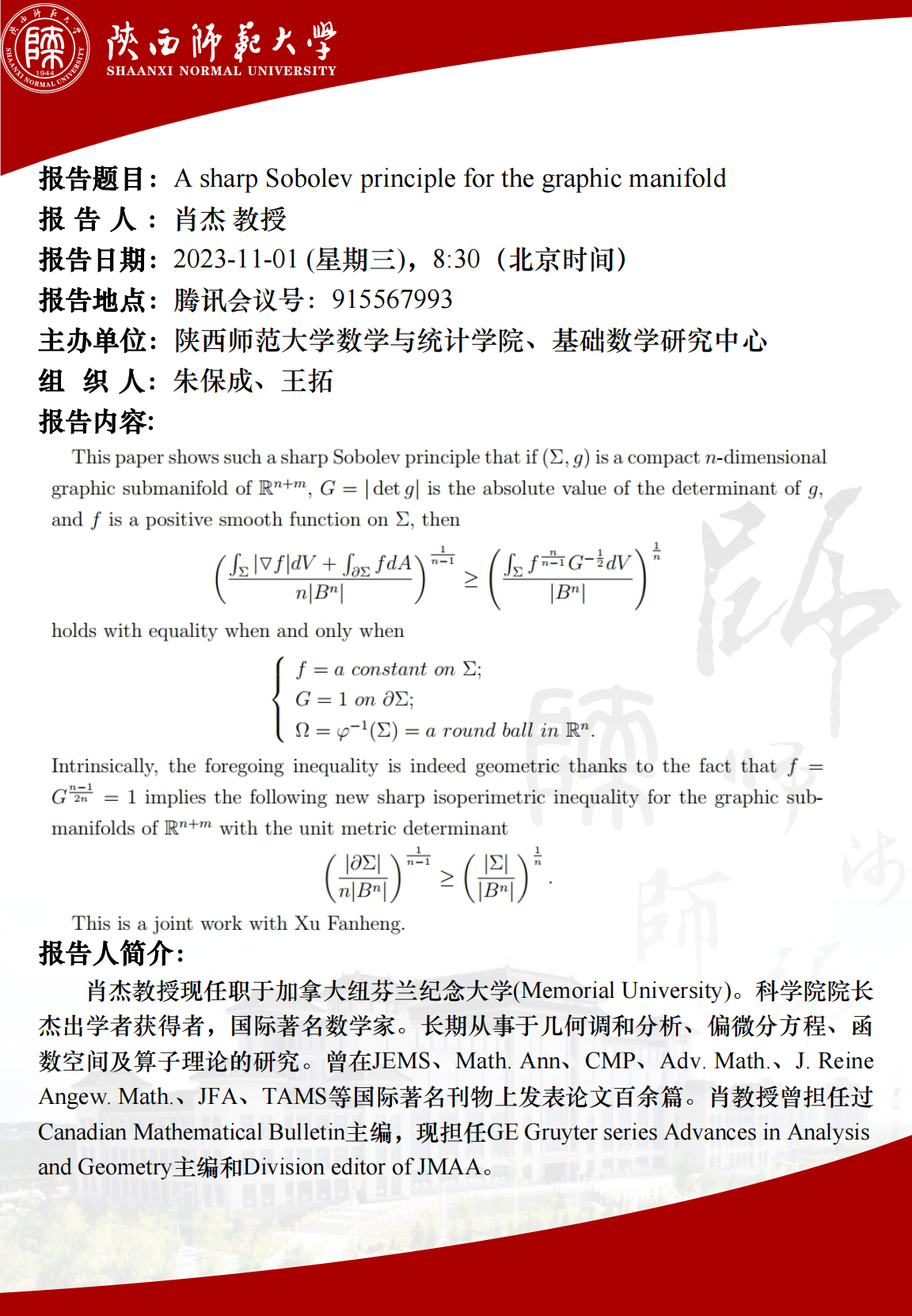 2023年西安微分几何研讨会