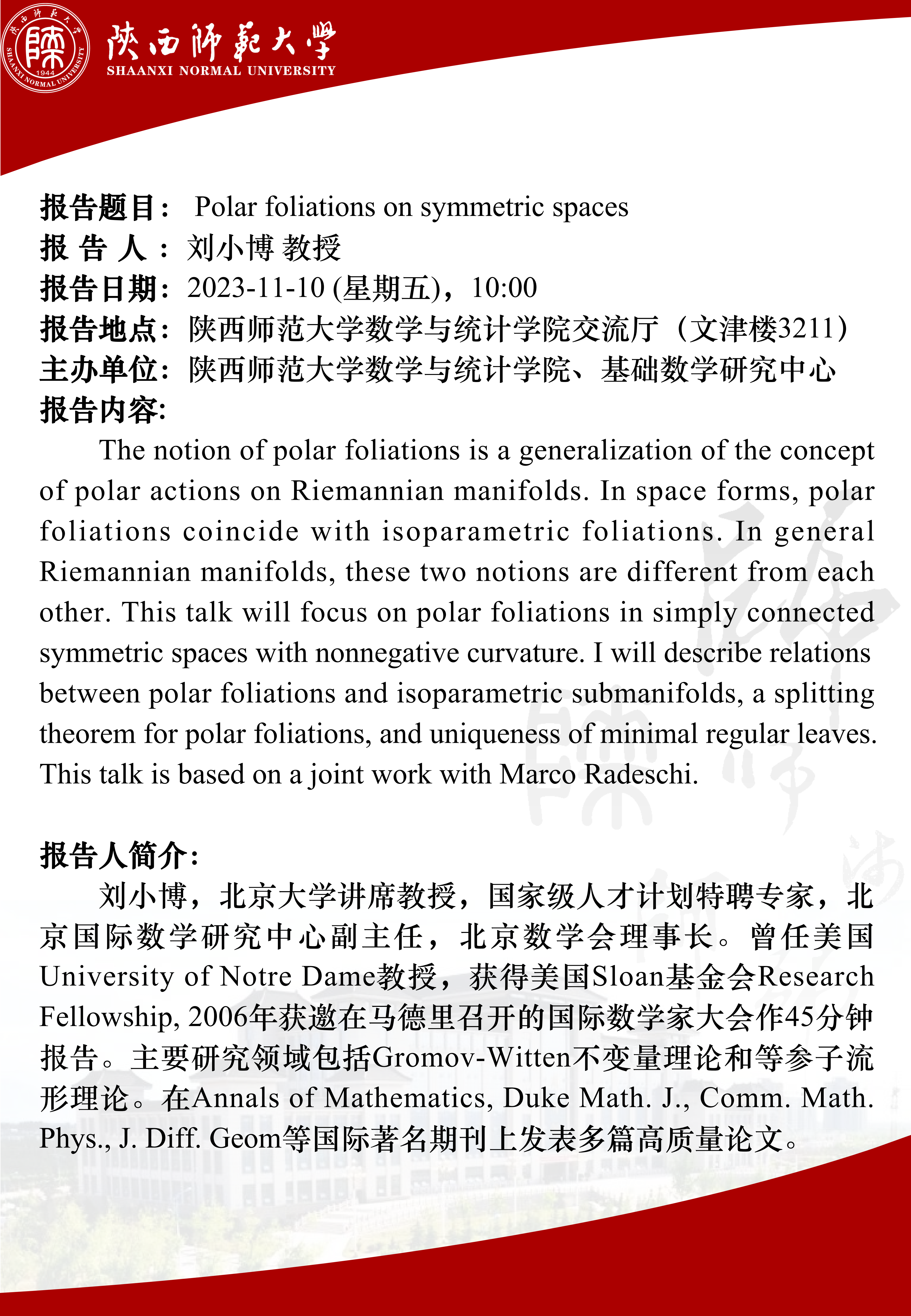 2023年西安微分几何研讨会