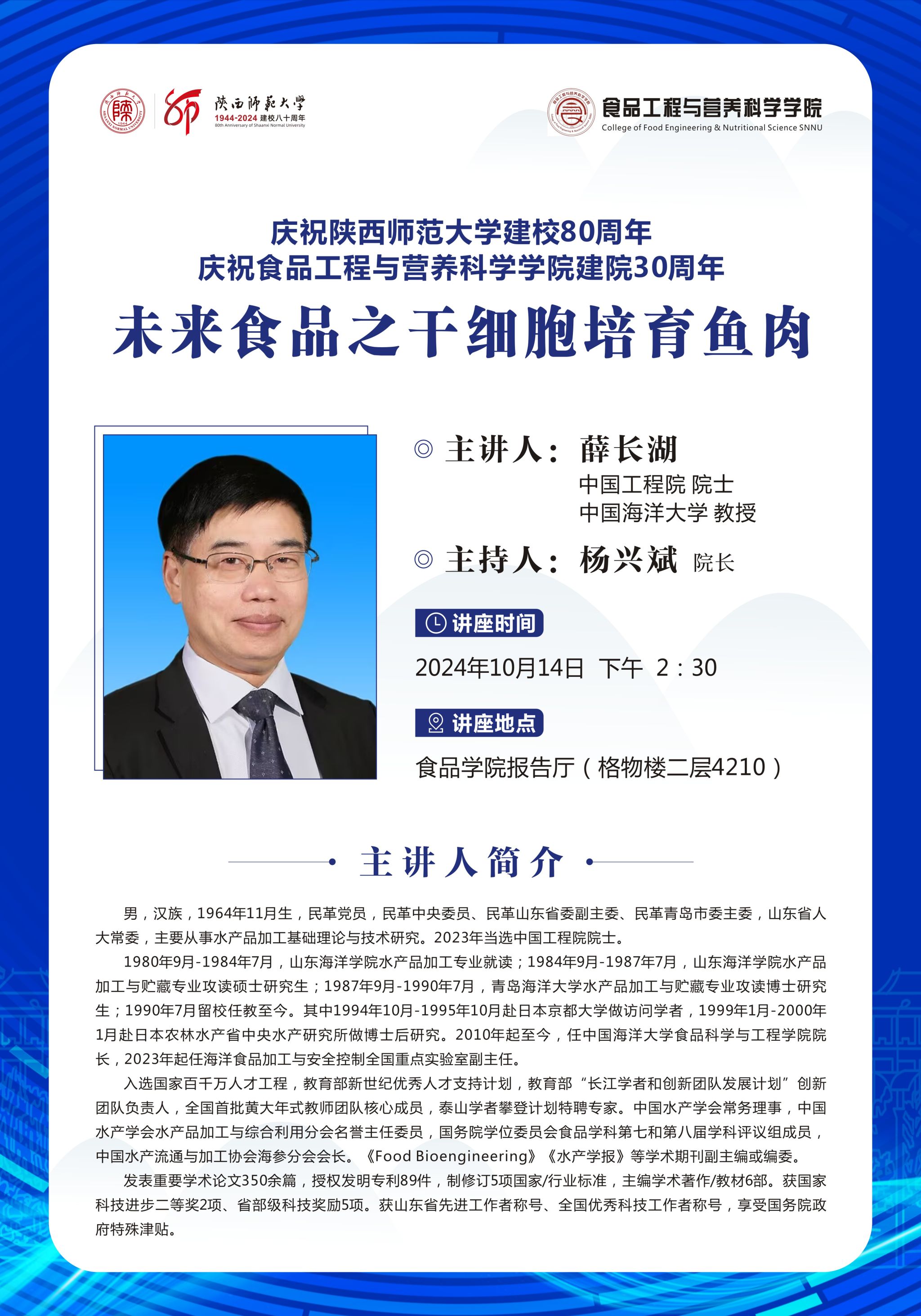 校庆80周年院士论坛(四)--未来食品之干细胞培育鱼肉