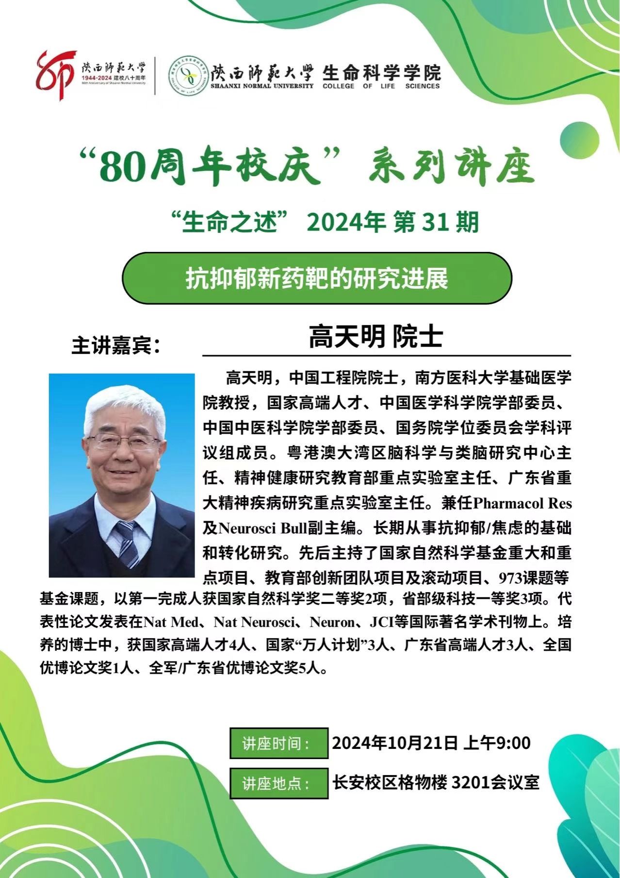 校庆80周年院士论坛(六)--抗抑郁新药靶的研究进展