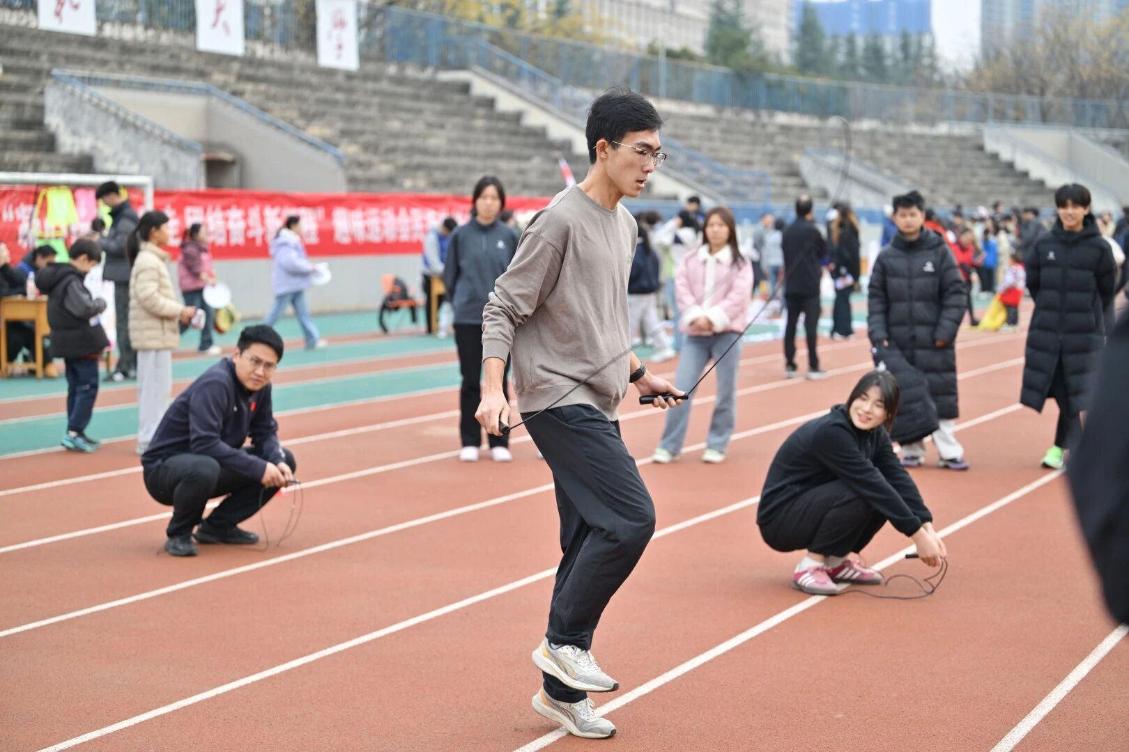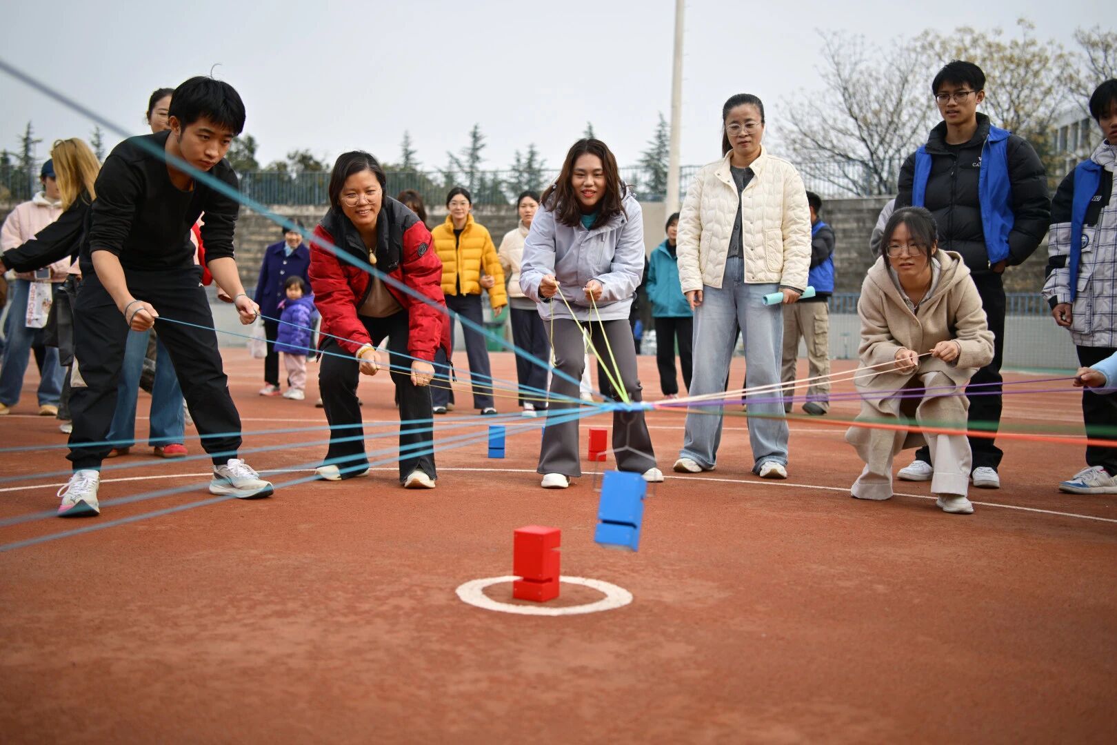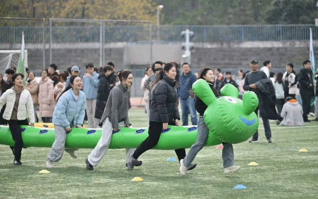 本届运动会设置了背对背夹球接力、小绳单摇接力、击鼓颠球、合力筑塔、“毛毛虫”竞速、推铁环接力等六个比赛项目。赛场上师生默契配合,在轻松愉快的氛围中共同完成各项比赛,展现了积极向上的精神风貌。