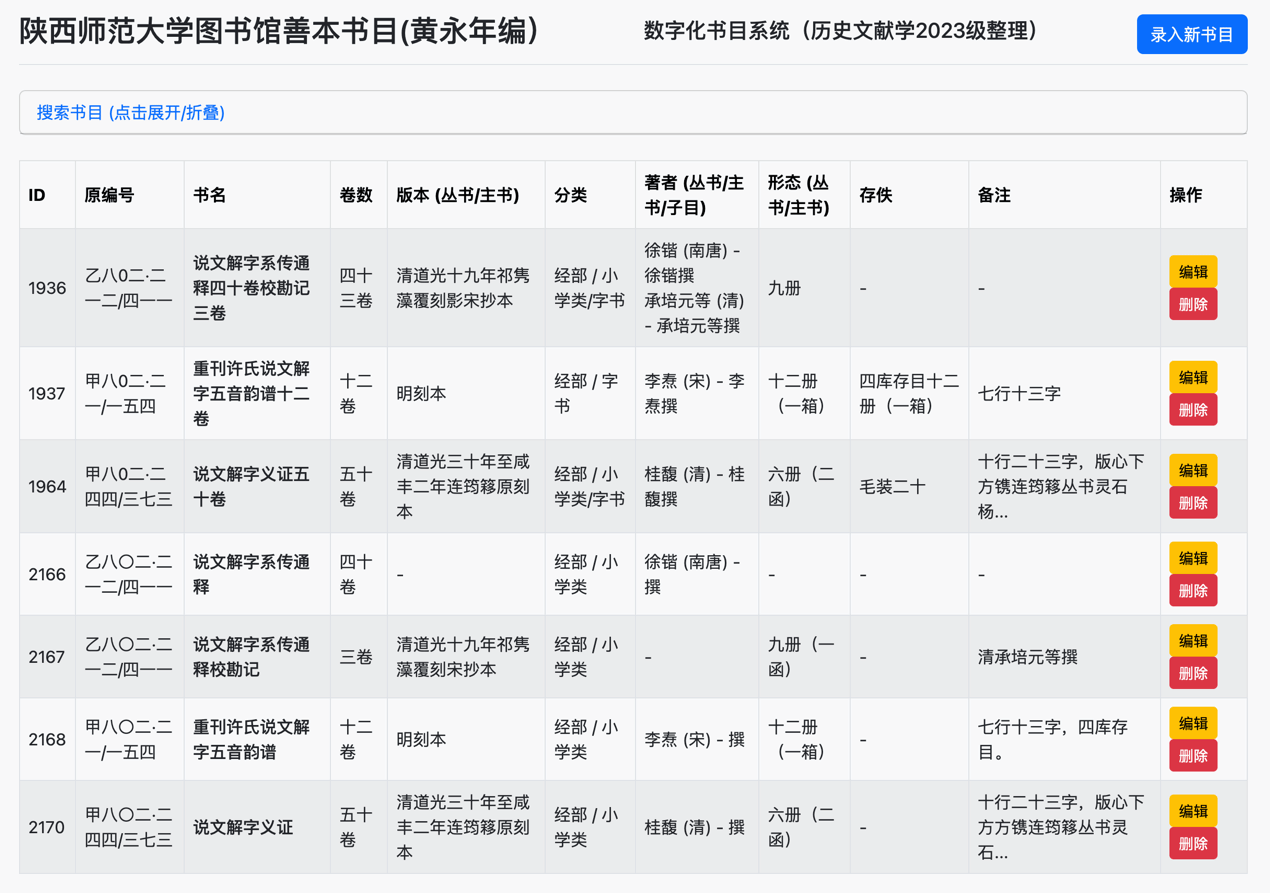 beat365手机版官网在古籍整理领域有着深厚传承,秉承黄永年先生等学者的学术衣钵,团队将古籍整理的三大支柱——目录学、校勘学、版本学——融入数字化实践。比如,张光伟带领2023级古典文献专业的学生对黄永年先生(黄永年,1925-2007年,出生于江苏江阴,毕业于复旦大学历史系,历史学家,曾任beat365手机版官网古籍整理研究所所长)的《beat365手机版官网图书馆藏善本书目》进行了数字化,让文献专业学生跟随文献前辈大家的脚步,学习并利用数字技术赋能专业能力的训练。这既是技术创新的成果,也是学术传统的现代化延续。