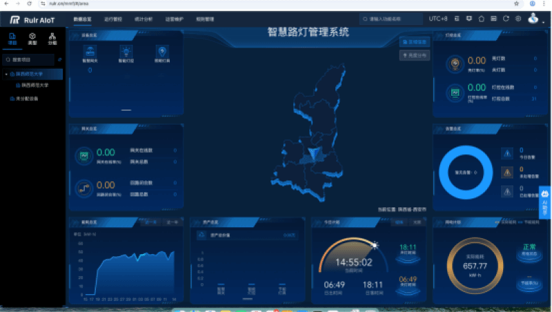 智慧路灯:依光启闭,照明控制更灵活。为优化校园照明管理体系、提升路灯智能化管控水平,学校建成智慧路灯管控系统。通过安装智能路灯线路控制终端及高精度光照度感应装置,实现对两校区路灯的远程开关控制、能耗监测、运行状况检测以及故障告警等功能。在定时开关的基础上,该系统能够依据天气和季节变化自动调节路灯的启闭时间。整套系统的建成投用,在显著提升校园照明管理效能的同时,也为绿色校园建设和“双碳”目标的落实提供助力。