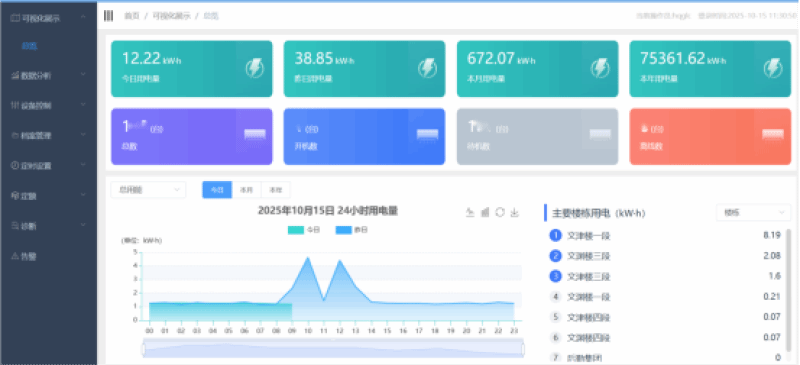 空调智控:精准调节,用电管理更智能。学校在文津楼、文渊楼等区域的公共教室安装百余台空调智能控制插座,搭建起空调智能管理平台。通过采集空调及教室环境温度及用电数据,实现对公共教室空调的远程控制、故障诊断与报警、自定义场景模式调换功能。该系统的使用不仅为师生创造了更加稳定、舒适的个性化教学与学习环境,也显著提高能源使用效率。实际运行数据显示,该系统投入使用后,公共教室区域的空调用电量同比下降显著。
