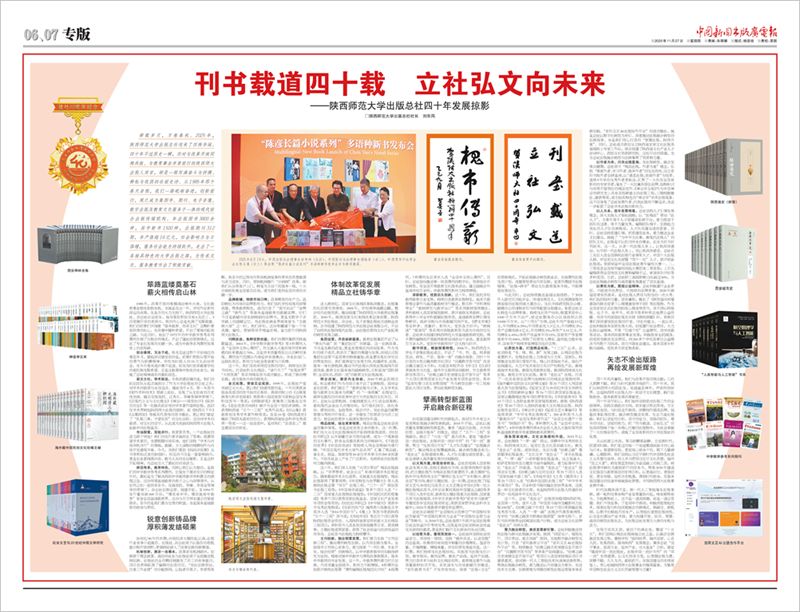 卌载岁月,万卷春秋。2025年,beat365手机版官网出版总社迎来了四秩华诞。四十年不过历史一瞬,但对与改革开放同频共振、与教育事业并肩前行的陕西师大出版人而言,却是一部写满奋斗与拼搏、耕耘与收获的壮丽史诗。从1985年那个春天启程,我们一路砥砺奋进,创新前行,现已成为集图书、期刊、电子音像、数字出版及教育文化服务于一体的现代综合出版传媒机构。年出版图书3800余种,其中新书1500种,出版期刊312期,年产值超16亿元,社会影响力与日俱增,服务社会能力持续跃升,走出了一条独具特色的大学出版之路,为传承文化、服务教育做出了积极贡献。