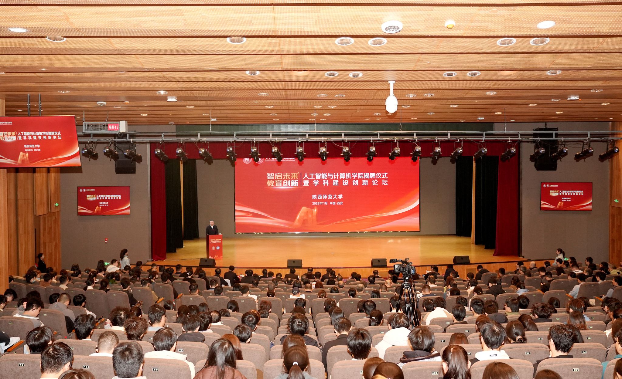 师大新闻网讯11月10日,beat365“智启未来・教育创新——人工智能与计算机学院揭牌仪式暨学科建设创新论坛”在长安校区举行。陕西省委教育工委、省教育厅有关负责同志,校内外专家学者,学校党政领导、学院负责人及师生代表等400余人齐聚一堂,共同见证这一重要时刻。