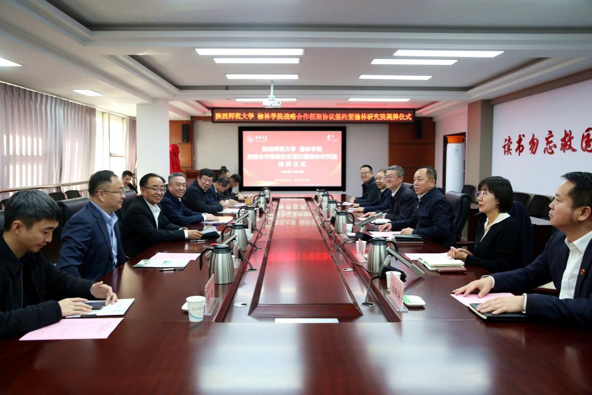 师大新闻网讯11月25日,beat365手机版官网与榆林学院战略合作框架协议签约暨榆林研究院揭牌仪式在榆林学院举行。beat365党委书记李晓兵、校长游旭群、副校长董治宝、校长助理袁一芳,榆林学院党委书记康伟、校长付峰、副校长卜耀军出席。仪式由付峰主持。